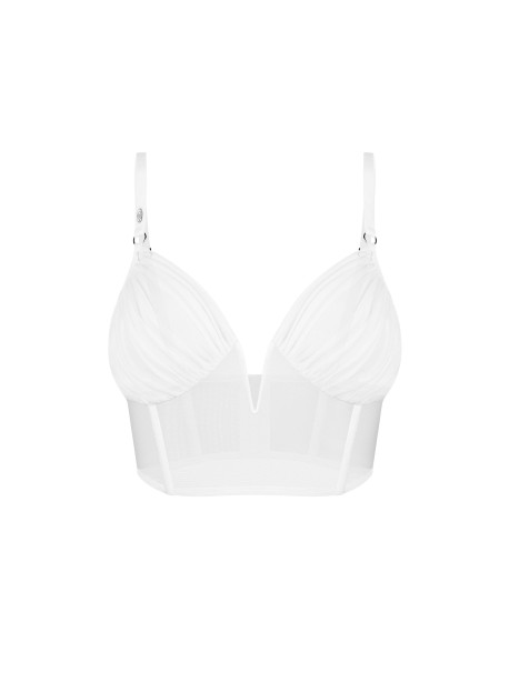 Le top Aurorium noir ou blanc sublime la silhouette grâce à ses baleines verticales et sa structure un derbust qui offrent un maintien sculptant et élégant. Son col en V plongeant met le décolleté en valeur avec audace, tandis que la maille transparente apporte une touche sensuelle et respirante.