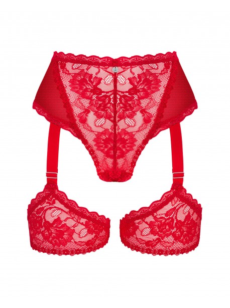 Optez pour cette culotte jarretière rouge au style sensuel proposée par la marque de lingerie féminine Obsessive ! Cette culotte taille haute met parfaitement en valeur le bassin et assure un confort absolu, même au quotidien ! Elle est confectionnée dans une maille délicate ornée d’une riche dentelle fleurie au cente. Ce modèle aux accents tentateurs est doté de jarretières sexy en dentelle rouge, qui rehausseront encore l’atmosphère des soirées chaudes avec votre bien-aimé. Alors n’attendez plus pour la commander, vous ferez des ravages dedans ! Découvrez également le soutien gorge rouge associé afin de vous constituer un ensemble de lingerie rouge exceptionnel !