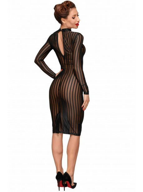 Cette magnifique robe classique est confectionnée en tulle décoratif, élastique et très doux. Le col montant se ferme à l’aide d’un bouton. L’encolure sexy dans le dos est bordée de dentelle.