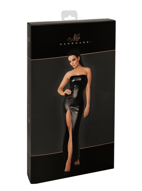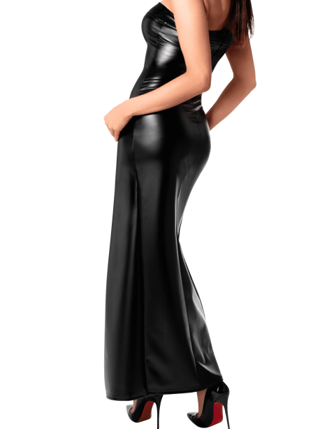 – Robe longue fendue à bustier en powerwetlook mat